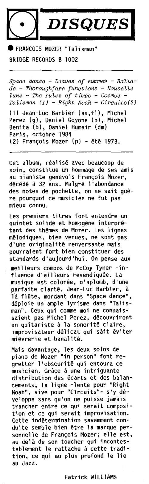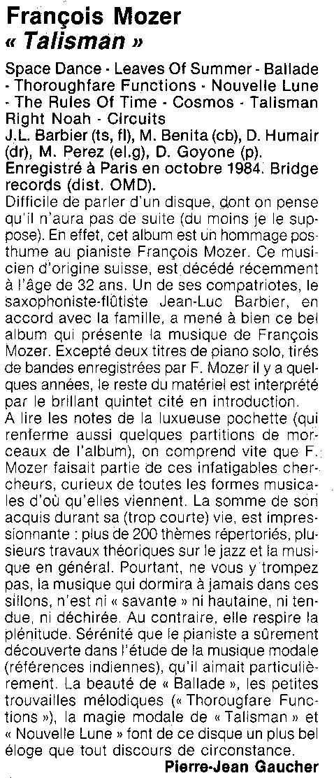 (Jazz Hot - Décembre 1985)