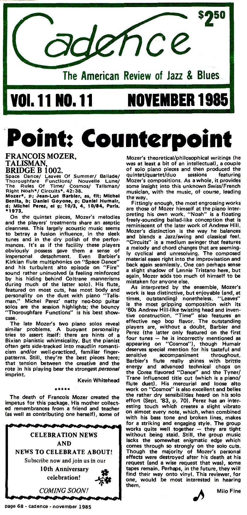 Cadence Magazine - November 1985