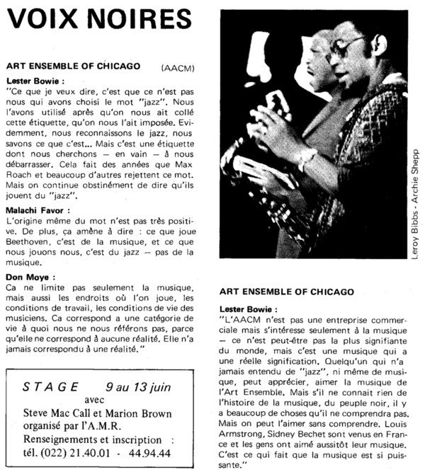 de l'AMR en 1972 et je suis celui qui a organisé les premiers concerts de l'A.M.R. Comme