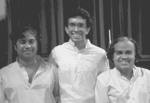 By Kartik Iyer Raghupathi Rhythm has always been a quintessential facet of Carnatic music, and in the modern generation of percussionists, perhaps no other individual has mastered the intricacies and the laya endowments of the ghatam to such a great degree as Sri Thetakudi Harihara Vinayakram. T.H. Vinayakram, affectionately known as Vikku, has transformed himself into an international celebrity with his imaginative and beautiful drumming on the ghatam. The ghatam, a very ancient percussion instrument of South India, is a mud pot with a narrow mouth. From this narrow mouth, it shapes itself outwards to form a ridge. Primarily made of clay fired with brass or copper filings with some small amount of iron filings, the ghatam's size varies according to pitch. In addition the pitch can be altered to a small degree by the application of plasticine, clay or water. The ghatam is placed on the lap of the performer, with the instrument's mouth facing the belly. The artiste uses his fingers (including thumbs), his palms, and occasionally, even the fingernails to produce various sounds. Sometimes, the ghatam is turned around so that the mouth faces the audience, and the player is able to play more readily on the neck of the instrument. Son of the noted and talented musician and percussionist, Kalaimamani T.R. Harihara Sharma, who among other things, played on the mridangam, morsingh, and the gettuvadhyam (the only stringed instrument used for percussion resembling the fretless veena, often employed by the famous Kanchipuram Naina Pillai (1889-1934) as an accompanying instrument), Vinayakram was a child prodigy. He started his concert career at the tender age of thirteen. A doyen of South Indian percussion, not only has he demonstrated his amazing dexterity in accompanying the great stalwarts of yesteryear and recent times - Semmangudi Srinivasa Iyer, G.N. Balasubramaniam, Madurai Mani Iyer, M.S. Subbulakshmi, and Maharajapuram Santhanam - but he has also displayed his creative and improvisatory genius in playing mind boggling rhythms for various fusion groups, such as Shakti and J.G. Laya. On the Carnatic music platform Vikku is renowned for his crisp play and deep knowledge of rhythm. He majestically finishes many a tani avartanam by throwing his ghatam in the air and catching it without missing a beat. Vinayakram first became known in the West in the mid 1970s as a member of the group Shakti, which consisted of the jazz guitarist John McLaughlin, violinist L. Shankar, tabla virtuoso Zakir Hussain, and Vikku. The extraordinary speed and precision of his duets with Zakir Hussain captivated international audiences. Vikku once commented on the brilliance of this fusion group: It is universally acknowledged that Shakti's music is unique. In this group I played ghatam. Many of the compositions performed in this group were inspired by traditional Indian ragas, which resulted in grand appreciation from Indians, as well as audiences in the West. Only through this group did I have the new experience of entering the world of fusion music, and I think we were able to exhibit and develop our individual talents to the maximum extent possible. This liberty given to the artist resulted in achieving the fullest coordination and success in the group. Shakti, being the predecessor of many and various contemporary bands, could hence be termed the 'Godfather' of fusion music." Vinayakram has also performed with J.G. Laya, an experimental group which includes pianists and other percussionists. Having traveled all over the world, with exposure to various forms of music and teaching experience both in India and the United States (Vinayakram was with the Centre for World Music (Berkeley, California) for some time), Vikku is an international musician in every sense of the word. As a master of ceremonies once uttered prior to a concert in Toronto, Canada in 1993: 'Mr. Vinayakram is a jet-setter; day before yesterday he was performing in Madras, and a week before he was in Germany, and then tomorrow he is going back to London, starting a tour on the seventh, coming back on the tenth to Cleveland, and going back to Germany on the fourteenth....' Vinayakram has a number of titles and awards to his name, including: "Astana Vidhwan" of Kanchi Kama Koti Peetam, "Ghatam Nagamani" given by Sri Sri Sri Jayendra Saraswathi, "Kalaimamini" given by the government of Tamil Nadu, India, and the First Sangeeth Natak Academy award for ghatam in 1988. In addition to these attainments, Vinayakram became the first South Indian artist to ever receive a Grammy Award in 1991 for Best World Music Album for his participation in Mickey Hart's "Planet Drum" in which he played ghatam and morsingh. It is noteworthy that Vinayakram donated all of the royalties he received from this Grammy Award to Kanchi Kama Koti Peetam. In addition, Vinayakram was a nominee for the 38th Annual Grammy Awards for Best World Music Album for his participation in 'Raga Aberi' along with L. Shankar on the ten string double violin and Zakir Hussain on the tabla (the piece on this album is a Ragam-Tanam-Pallavi in Raga Aberi set in a tala cycle of 4 3/4 beats). Vinayakram is also noted for his accompaniment in the first Carnatic concert given at the United Nations in New York by M. S. Subbulakshmi in 1966. Currently, T.H. Vinayakram is the principal of his Sri Jaya Ganesha Thala Vadya Vidyalaya Percussion School in Madras. Vinayakram's younger brother and my guru, T.H. Subash Chandran, also an accomplished ghatam artiste, is perhaps the greatest modern day exponent of "konnakol." This verbal utterance of the rhythmic syllables is an art that is becoming dangerously close to obsolete. T.H. Subash Chandran is keeping alive an art that has had such illustrious practitioners as Pakkiriah Pillai and Vellore Gopalachari (father of current day mridangmist Vellore Ramabhadran). Vinayakram has two sons who are currently making names for themselves in the field of Carnatic percussion